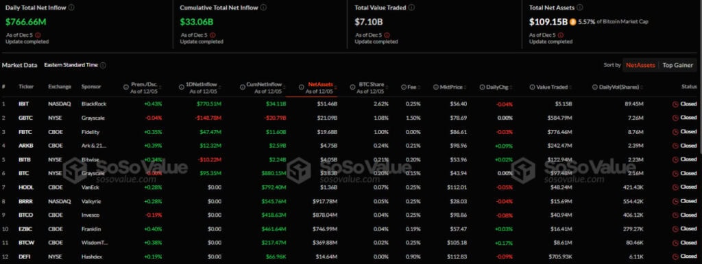 - Биткоин-ETF зафиксировали приток средств на сумму $766,66 млн.
