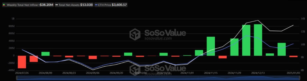- Ethereum-фонды столкнулись с оттоком на $38,20 млн.