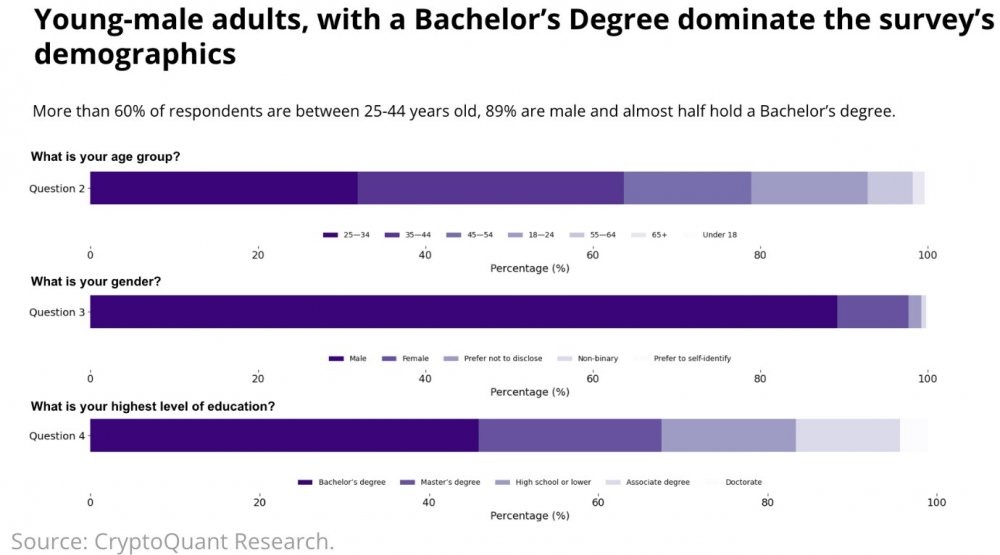 Большинство криптоинвесторов — молодые мужчины со степенью бакалавра. Источник: CryptoQuant Research.