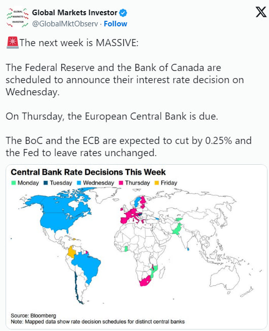 ФРС, скорее всего, сохранит текущий курс. Рынок тем временем внимательно следит за комментариями Пауэлла. ЕЦБ продолжает политику смягчения, что может ослабить евро, тогда как Банк Канады снижает ставки, но делает это с осторожностью. Аналитики ожидают новых сигналов, чтобы определить дальнейшие перспективы.