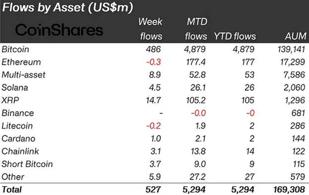 Инструменты на базе первой криптовалюты привлекли $486 млн, с начала года — $4,88 млрд.