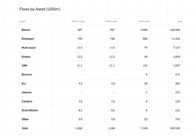 Притоки в продукты на основе XRP увеличились с $14,7 млн до $21,1 млн.