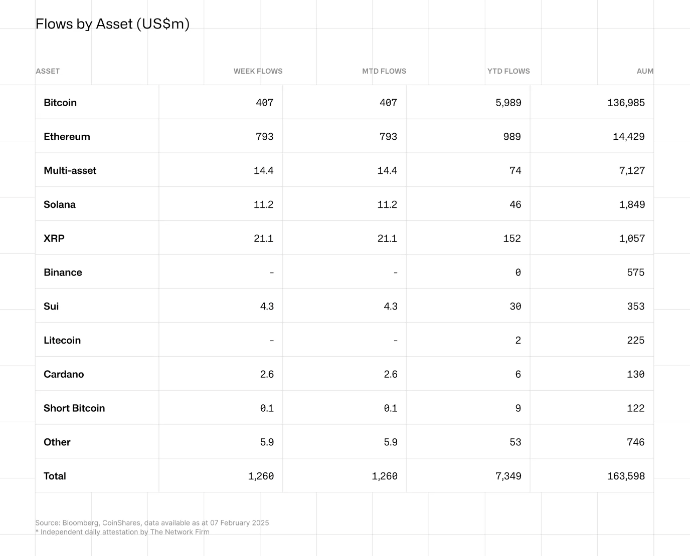 Как отметили аналитики CoinShares, недавнее снижение цен на крипторынке привело к падению общего объема активов под управлением биржевых криптофондов (ETP). Показатель снизился с $181 млрд по состоянию на конец января до текущих $163 млрд.