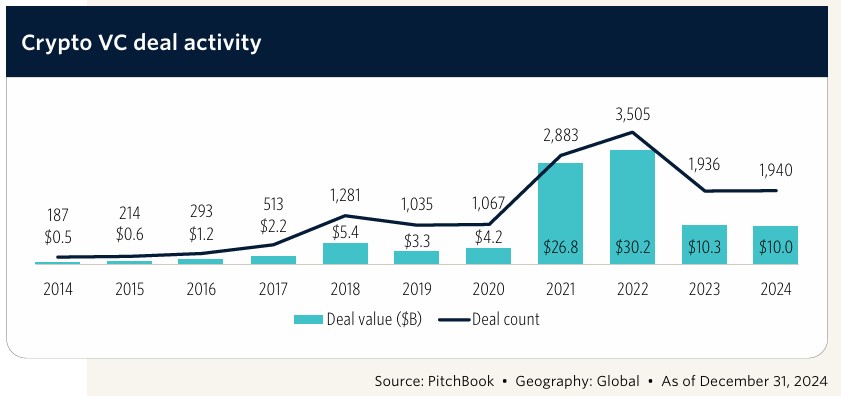 Ежегодная активность сделок венчурного капитала в криптосекторе. Источник: PitchBook