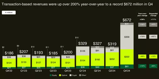 12 февраля онлайн-брокер Robinhood сообщил о росте выручки от торговли криптовалютами на 487% кв/кв, до $358 млн. Доля сегмента составила 53% от общего показателя.