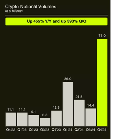 - Объем торгов криптовалютами на криптобирже Coinbase в октябре-декабре вырос на 137%, у онлайн-брокера Robinhood — 487%.