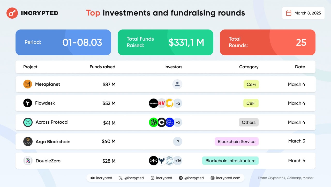 - Лидерами по сумме полученного финансирования стали компании Metaplanet и Flowdesk.