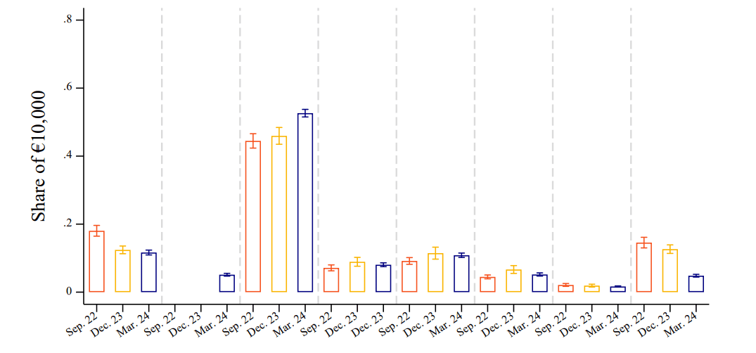 В ходе исследования аналитики опросили 19 000 респондентов в 11 странах еврозоны. Их трижды просили гипотетически распределить €10 000 по различным активам, однако лишь небольшую часть они выделили для CBDC.