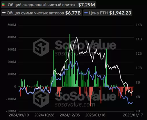 17 марта клиенты вывели из продуктов $7,3 млн, доведя общий показатель за указанный период до $297,6 млн.