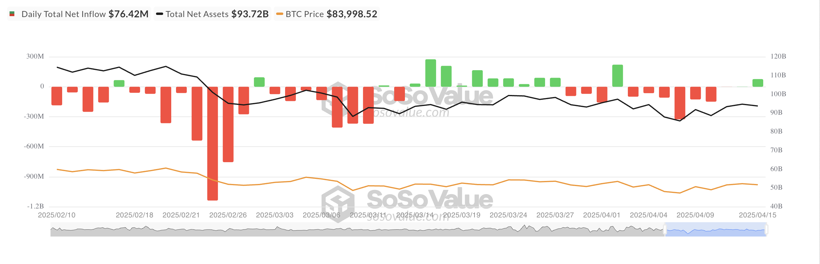 Во вторник 15 апреля ETF IBIT от BlackRock зафиксировал самый крупный дневной чистый приток в $38,22 млн, увеличив общий накопленный капитал до $39,64 млрд.