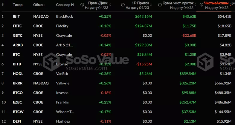 - IBIT от BlackRock —$643,2 млн;