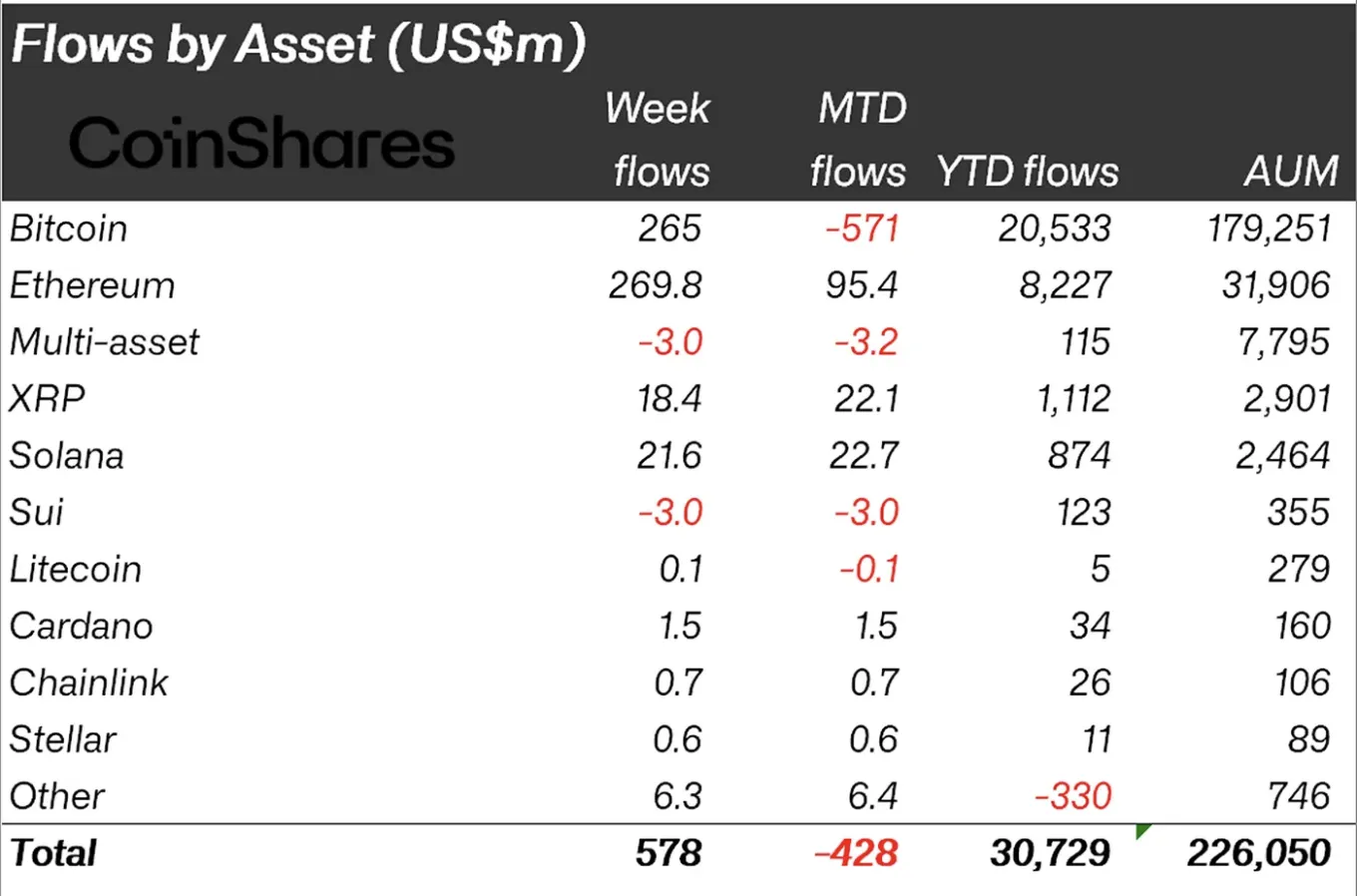 Большая часть притока пришлась на Ethereum-фонды — $268 млн. С начала года в них поступило $8,2 млрд. Сумма активов под управлением этих структур достигла $32,6 млрд — +82% с января.