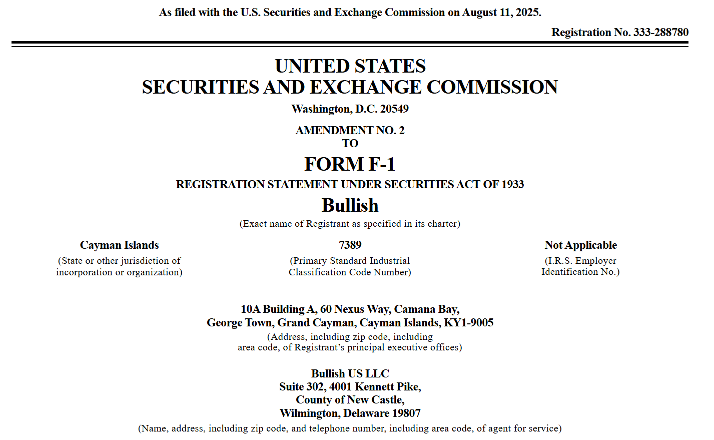 Обновлённое регистрационное заявление Bullish по форме F-1. Источник: SEC