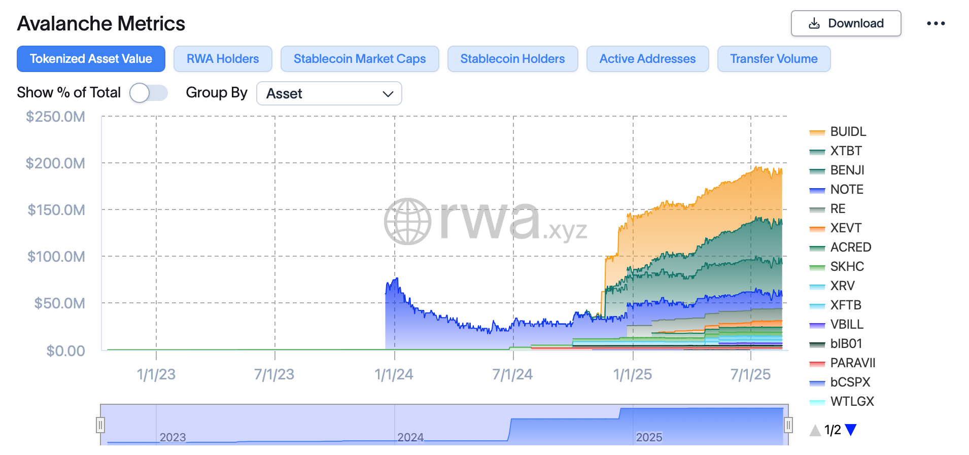 Объемы токенизированных RWA на Avalanche. Источник: RWA.xyz