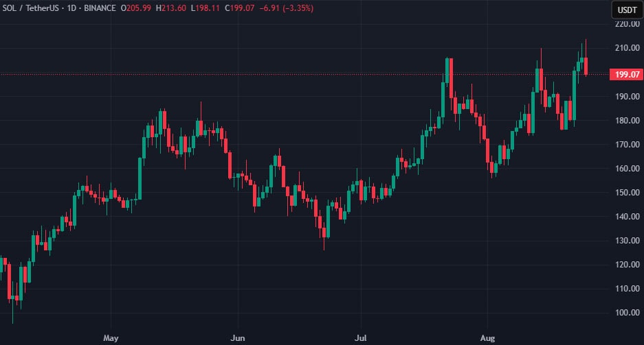 Отметим, на момент написания Solana торгуется вблизи отметки в $199: