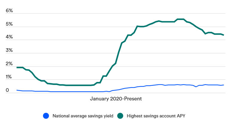 Счета в американских банках с самой высокой доходностью предлагают более низкую процентную ставку по сравнению с большинством стейблкоинов. Источник: Bankrate.
