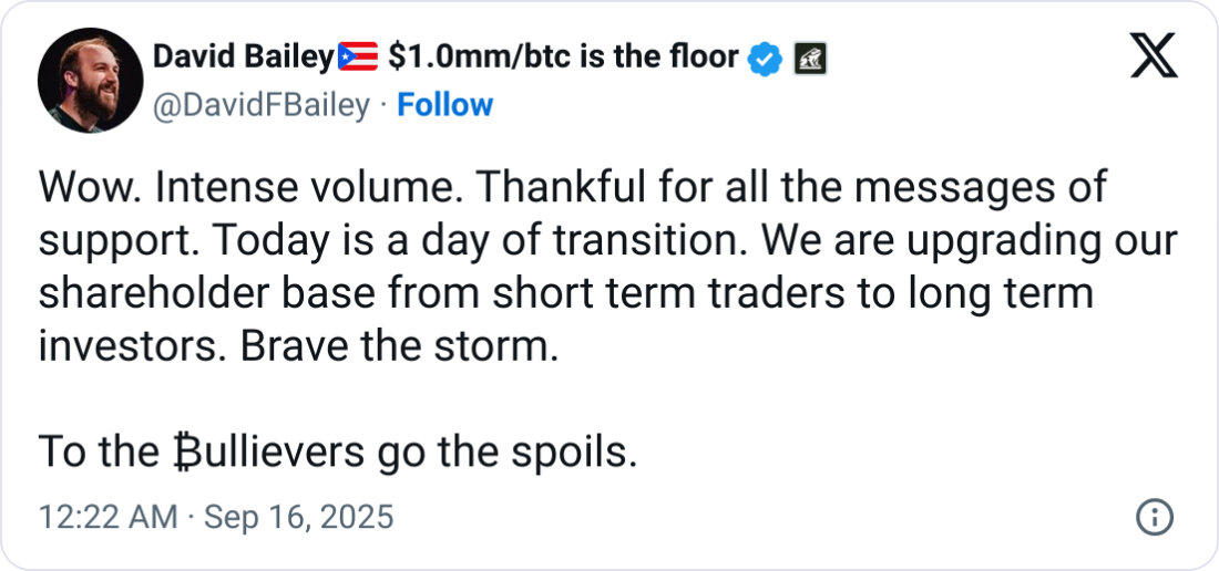 Бейли отметил в интервью на X, что акции KindlyMD продемонстрировали «интенсивный объем», но назвал это «днем перехода», когда фирма «повышает состав акционеров, превращая краткосрочных трейдеров в долгосрочных инвесторов».