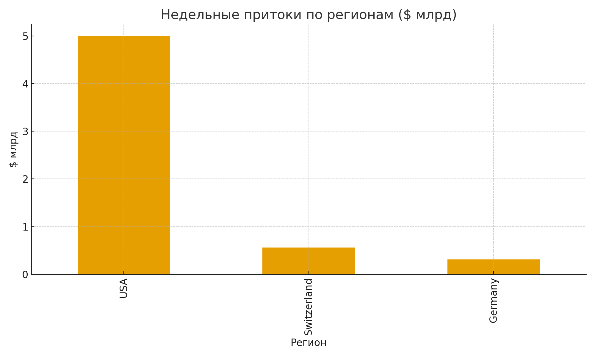 В Европе значимыми точками стали Швейцария и Германия, где притоки достигли $563 млн и $312 млн соответственно.