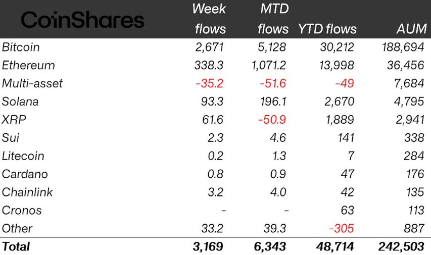 Помимо значительного еженедельного притока, криптофонды достигли нового рубежа. С начала года общий приток средств превысил показатель прошлого года, достигнув $48,7 млрд.