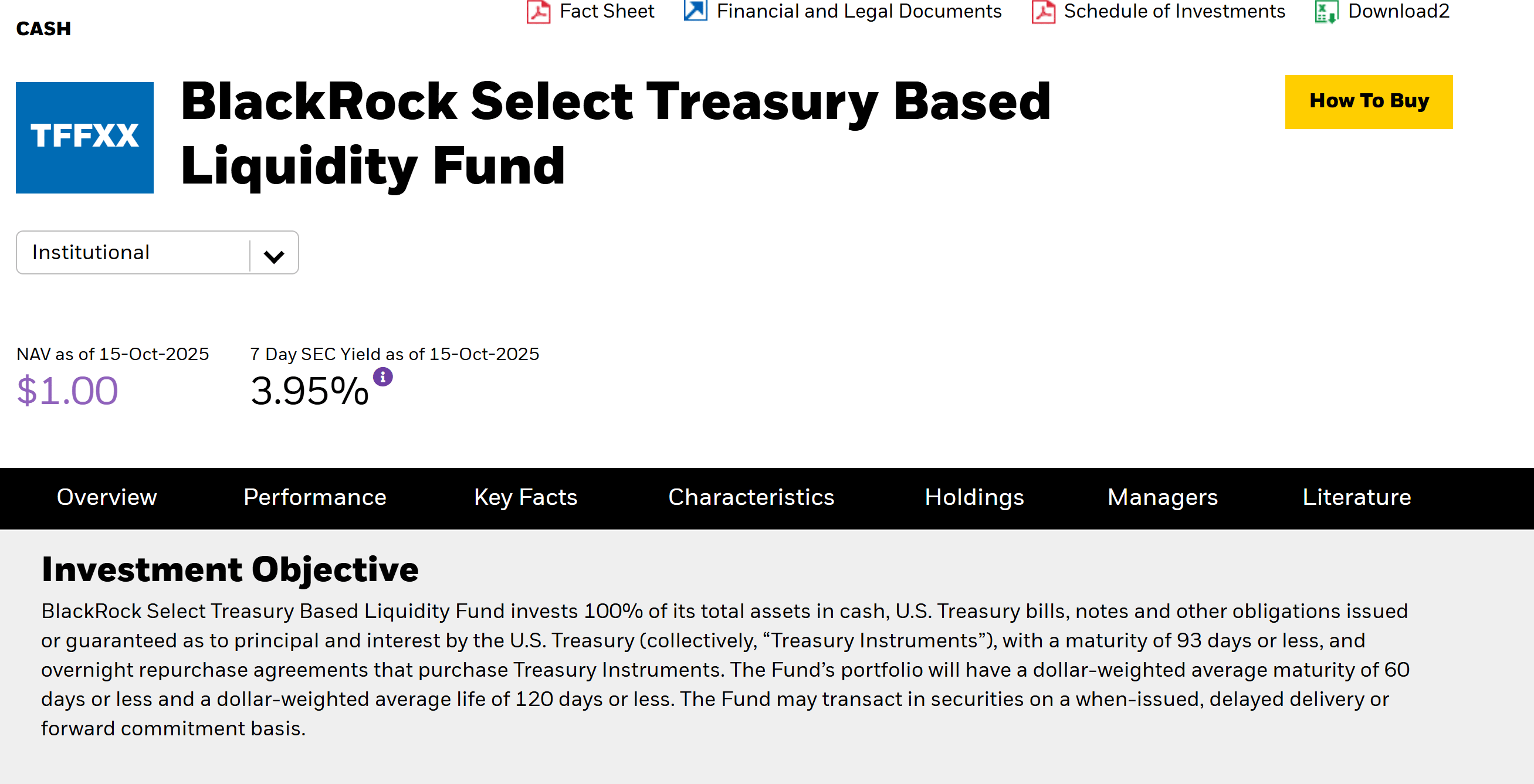 Согласно заявлению, поданному в Комиссию по ценным бумагам и биржам в августе, BlackRock переименовала и реструктурировала свой фонд денежного рынка BlackRock Liquid Federal Trust Fund, который ранее инвестировал 100% своих активов в наличные деньги, казначейские векселя и облигации США.