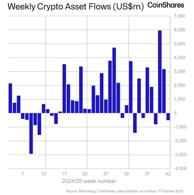 С 10 по 17 октября отток средств из криптовалютных инвестиционных продуктов составил $513 млн. Это произошло после проблем с ликвидностью на Binance 10 октября, говорится в отчете CoinShares.