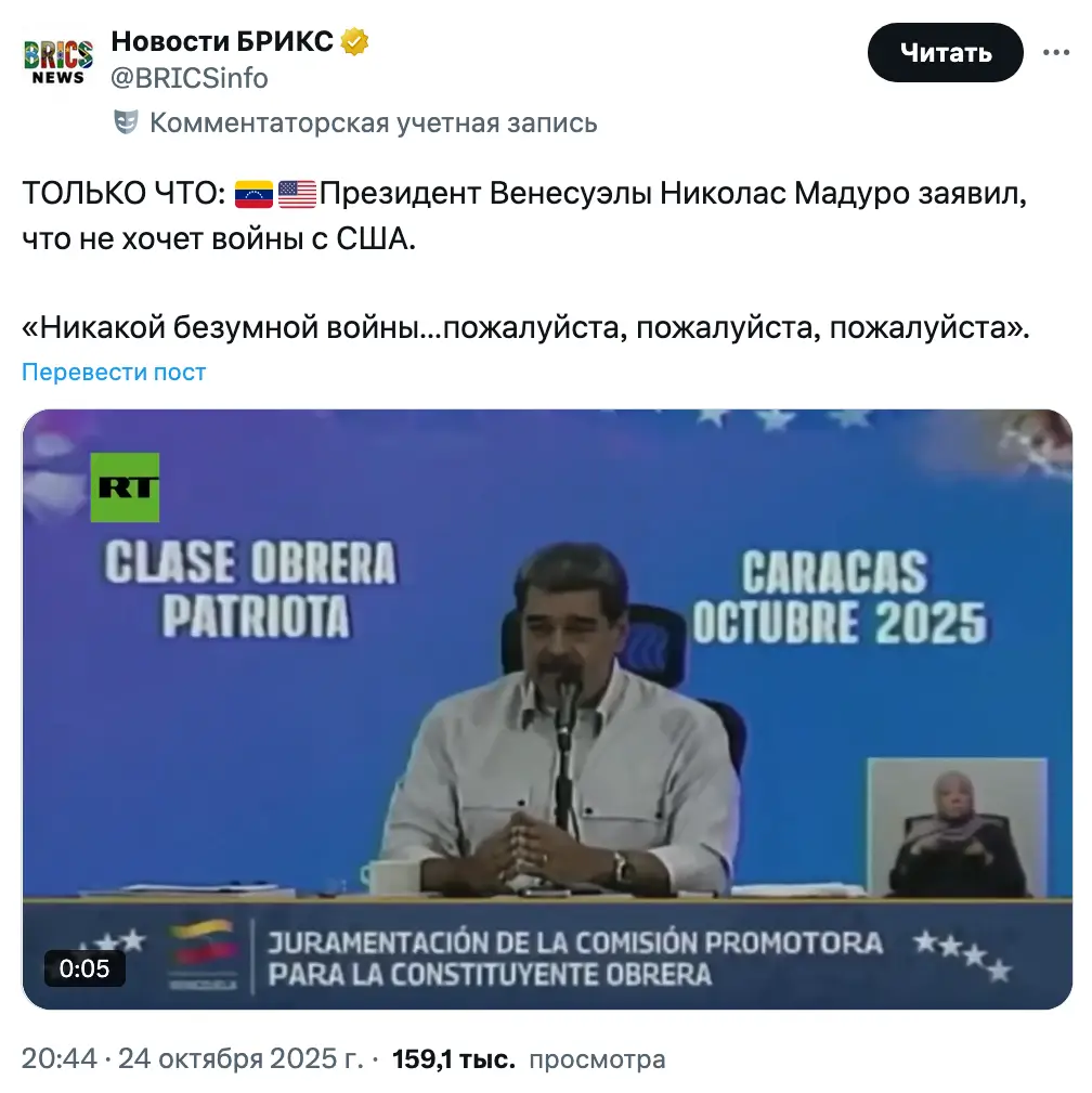 Ранее на этой неделе Министерство обороны США направило свой самый современный авианосец в Карибское море недалеко от Венесуэлы. Это произошло после того, как президент Дональд Трамп сообщил о планах нанесения военных ударов по наркокартелям, действующим на территории южноамериканской страны.