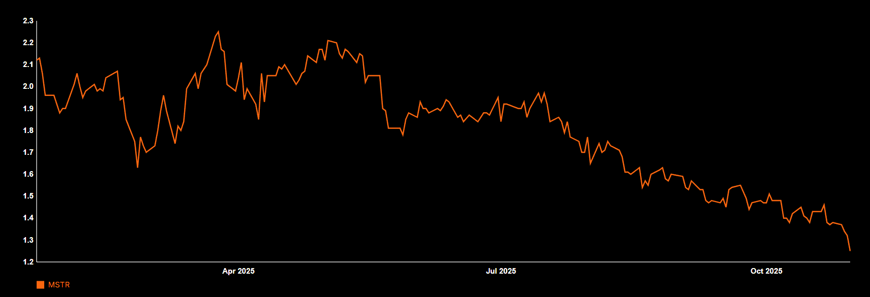 Несмотря на то, что MSTR по-прежнему торгуются с премией, это худшее значение с марта 2023 года. Для сравнения, на фоне инаугурации президента США Дональда Трампа в январе 2025 года он подскочил выше 2: