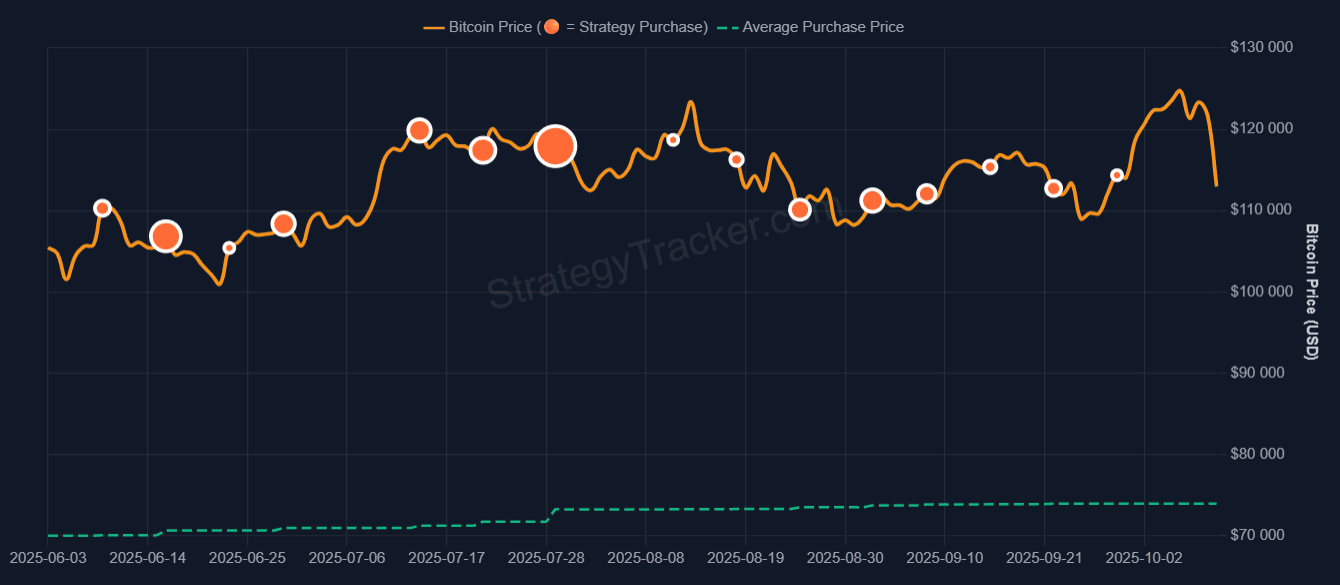 Это также видно на графике, который приводится на портале Saylor Tracker. Так, например, в сентябре 2025 года было только пять небольших покупок: