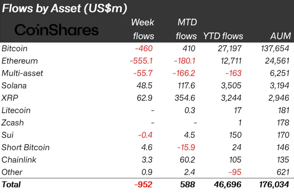 Ориентированные на Solana и XRP продукты продолжили позитивный тренд — они привлекли $48,5 млн и $62,9 млн соответственно.