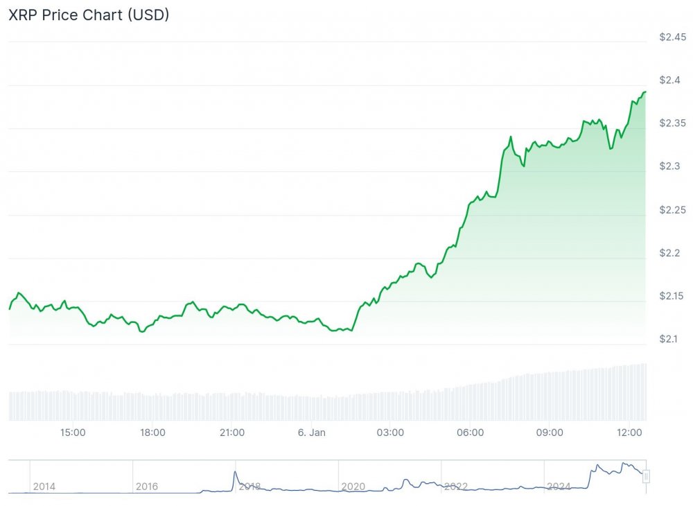 Эфир достиг дневного максимума выше $3 200 — самой высокой цены за более чем три недели. XRP подорожал почти на 12% за день — до $2,39, что стало максимумом с середины ноября.