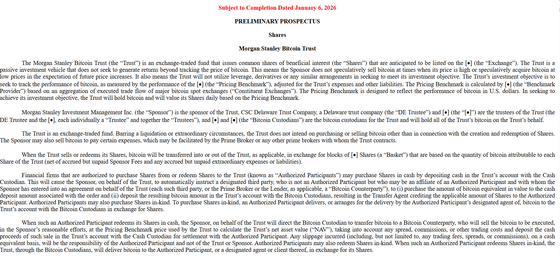 Morgan Stanley Investment Management выступает эмитентом обоих предлагаемых трастов.