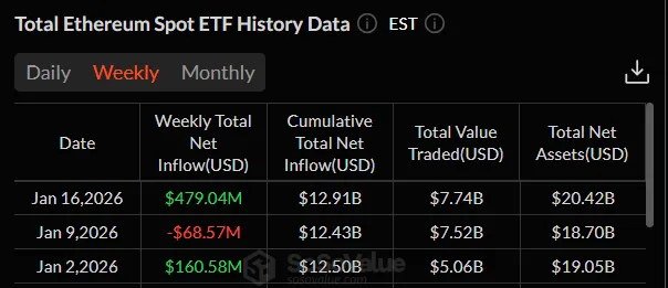 Позитивную динамику также продемонстрировали спотовые Ethereum-ETF. За неделю они привлекли $479 млн, что также стало лучшим результатом с октября.