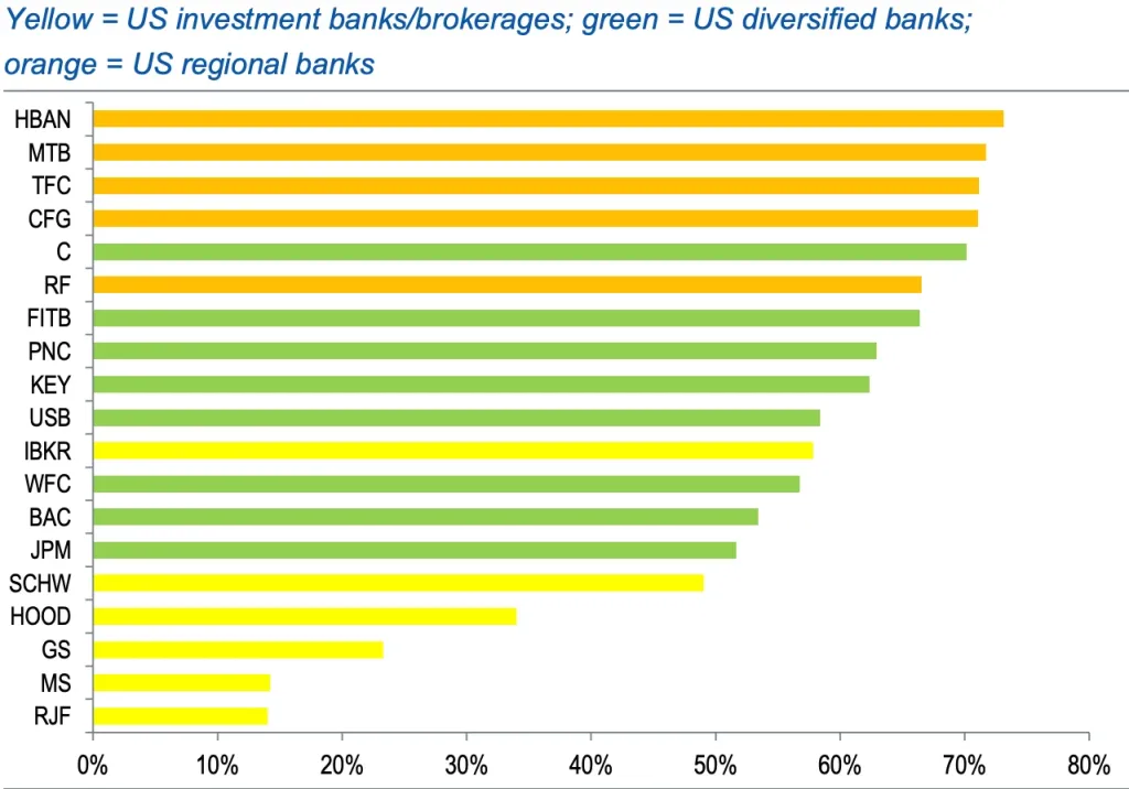 - региональные банки США — наиболее уязвимы из-за высокой зависимости от депозитного финансирования;