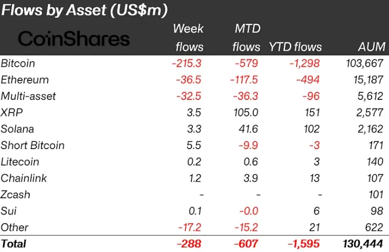 Небольшие поступления показали XRP ($3,5 млн), Solana ($3,3 млн) и Chainlink ($1,2 млн). Однако эти инвестиции не перекрыли общие потери в альткоинах.