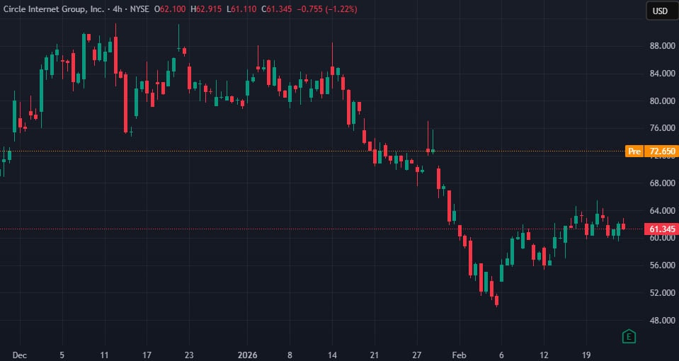 На этом фоне акции Circle (CRCL) подскочили примерно на 20% на премаркете. На момент публикации они торговались на уровне $72,7.