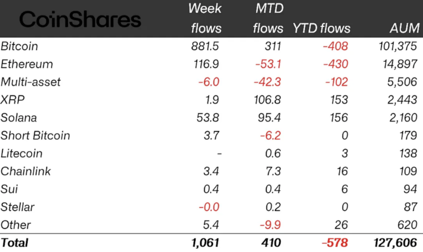 Криптовалютные инвестиционные продукты зафиксировали приток более $1 млрд после пяти недель последовательного оттока капитала, что стало первым разворотом динамики за более чем месяц.