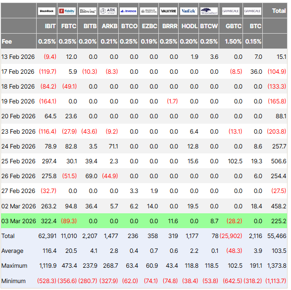 В период со 2 по 6 марта 2026 года сектор спотовых биткоин-ETF зафиксировал приток инвестиций на сумму $568,45 млн, согласно данным SoSoValue.