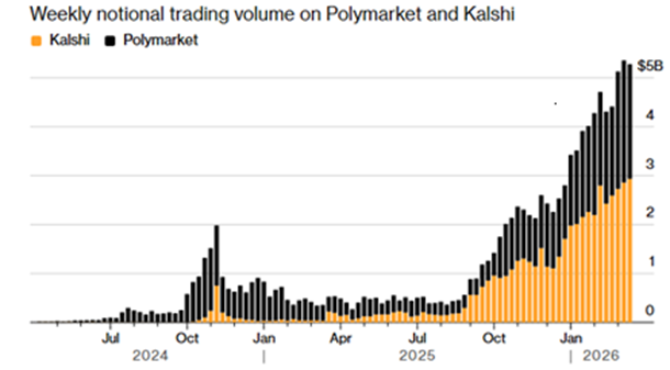 Согласно собеседнику Bloomberg, годовая выручка Kalshi достигла $1,5 млрд. По данным Dune Analytics, в феврале объем торгов платформы превысил $10 млрд — в 12 раз больше, чем полгода назад. Ускорение роста объема торгов во многом обусловлено запуском ставок на спортивные матчи.
