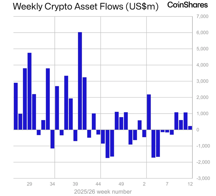 С 14 по 20 марта приток в биржевые продукты (ETP) на основе криптовалют составил $230 млн против $1,06 млрд неделей ранее. Такие данные привели в CoinShares.