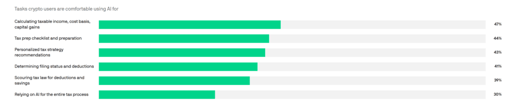 Около 47% пользователей готовы применять ИИ для расчетов налогооблагаемой базы и прибыли, по данным опроса. Вдобавок 30% допускают полную автоматизацию процесса подачи налоговой отчетности.