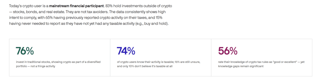 Несмотря на то что 56% респондентов считают, что разбираются в базовых принципах налогообложения криптовалют, почти две трети не знали о новых правилах, вступающих в силу в 2025 году. Это указывает на разрыв между восприятием и реальным уровнем знаний, уверены аналитики.