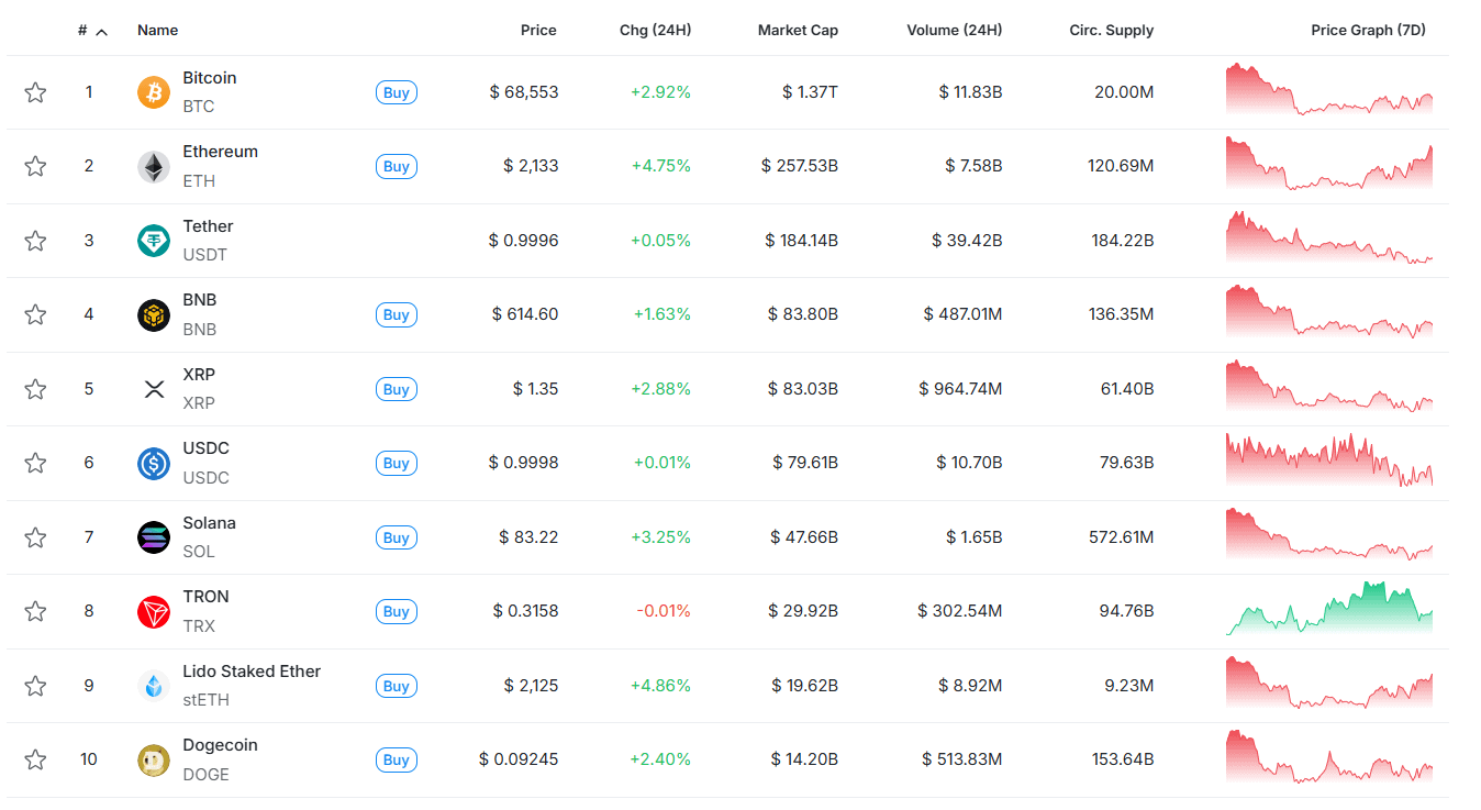 На криптовалютном рынке также почти все активы отметились положительной динамикой на суточном чарте: