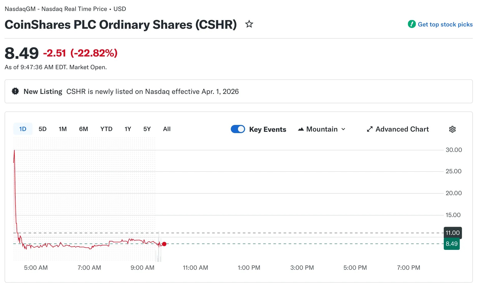 — CoinShares (@CoinSharesCo) April 1, 2026