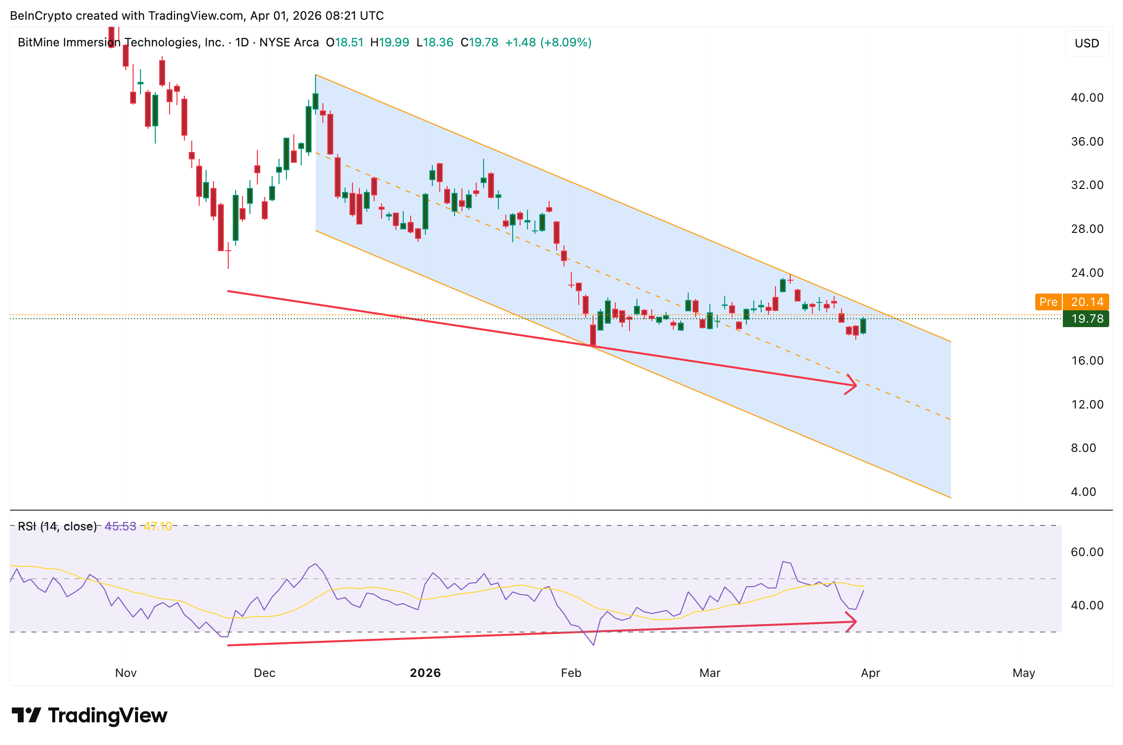 Ценные бумаги BitMine Immersion Technologies (BMNR) подорожали на 12% по итогам торгов 31 марта. Цена закрытия составила $19,78. Это самый сильный однодневный рост актива за последнее время. Резкое изменение позиций на рынке опционов совпало с решением аналитиков B. Riley. Эксперты повысили целевую стоимость с $30 до $33.