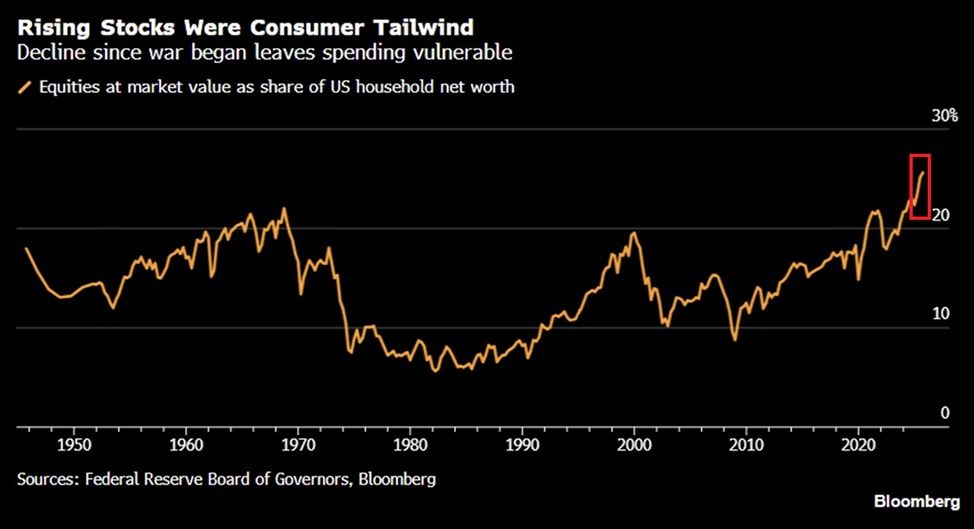 «Значительная коррекция акций может спровоцировать резкое сокращение расходов, особенно среди домохозяйств с высоким уровнем дохода, которые обеспечивают значительную часть потребления».