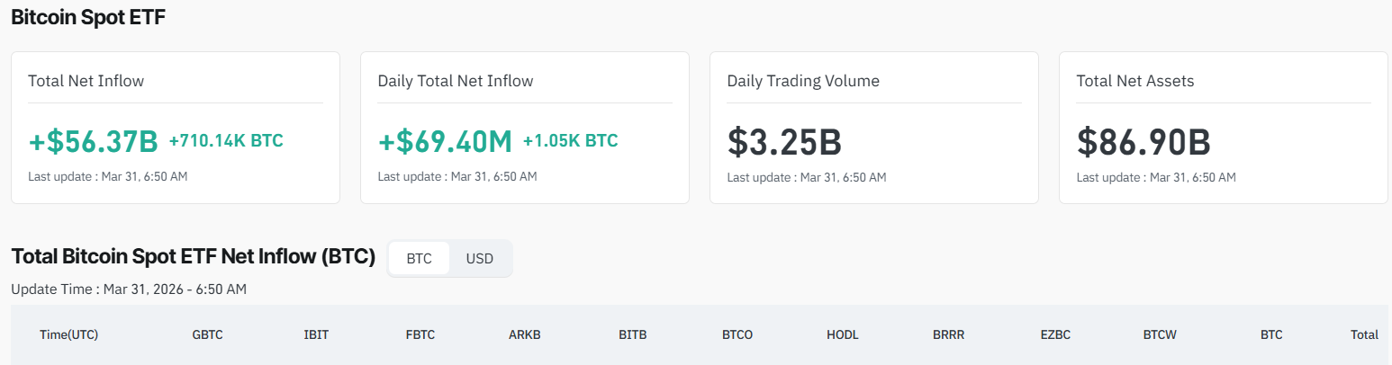 Спотовые биткоин-ETF превысили $86 млрд по совокупному объему активов под управлением. Об этом свидетельствуют Coinglass.