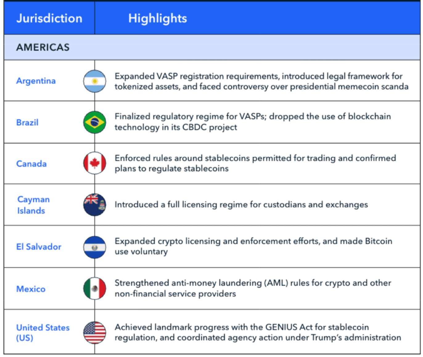 В частности, Бразилия ввела лицензирование криптокомпаний, ввела требования по противодействию отмыванию денег (AML) и финансированию терроризма (CFT), а также минимального капитала и рассматривает налог на международные криптопереводы.