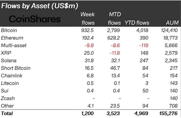 Основной приток пришелся на биткоин — $933 млн. С начала года инвестиции в первую криптовалюту достигли $4 млрд. В инструменты, позволяющие открывать короткие позиции по цифровому золоту, поступило $16,5 млн.