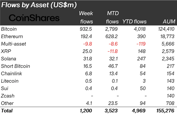 В ETP на основе $XRP ($XRP) и Solana (SOL) поступления возобновились и составили $25 млн и $31,8 млн соответственно. Неделей ранее инвесторы вывели из фондов $56,2 млн и $2,3 млн соответственно.