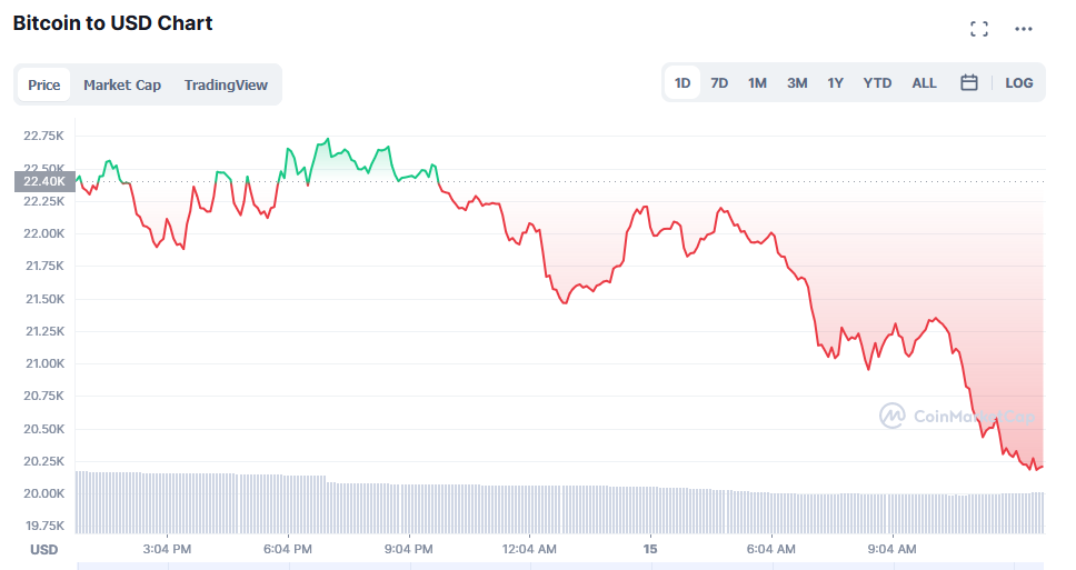 Биткоин за сутки теряет 10% и вплотную приблизился к отметке 20 000 долларов. Сейчас он торгуется по 20 200 долларов.